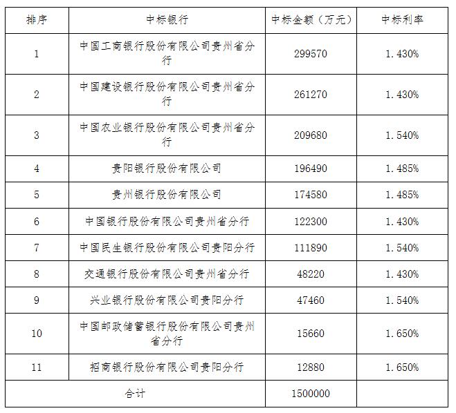 根据财政部和中国人民银行印发的《地方国库现金管理试点办法》和我省印发的《贵州省省级地方国库现金管理实施办法》的有关规定,现将2017年贵州省省级地方国库现金管理(第一期)招标结果公告如下: