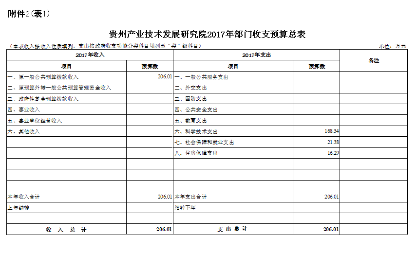 一、贵州产业技术发展研究院2017年度部门收支预算总表