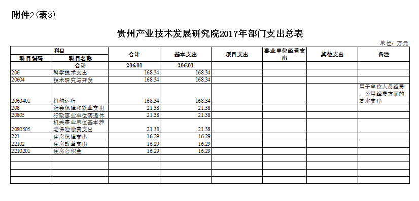 三、贵州产业技术发展研究院2017年部门支出总表