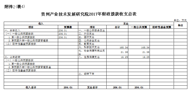 四、贵州产业技术发展研究院2017年财政拨款收支总表
