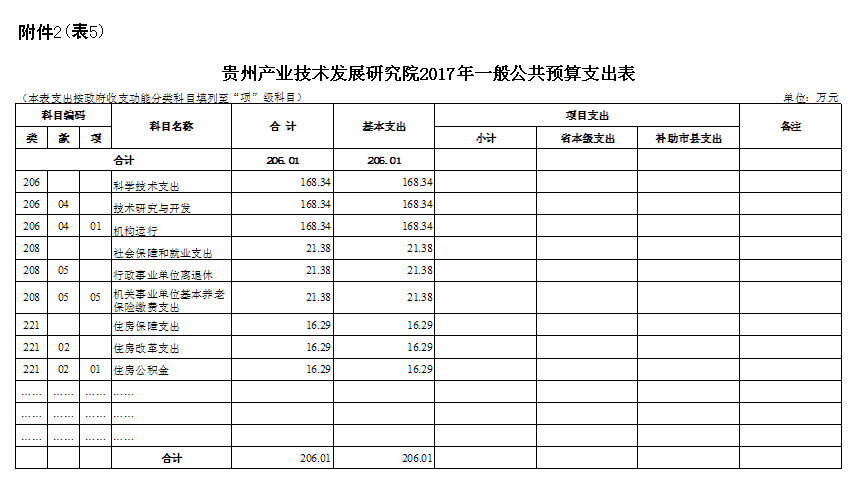五、贵州产业技术发展研究院2017年一般公共预算支出表