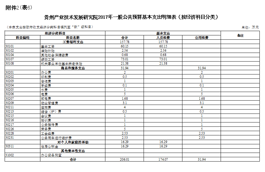 六、贵州产业技术发展研究院2017年一般公共预算基本支出明细表(按经济科目分类)
