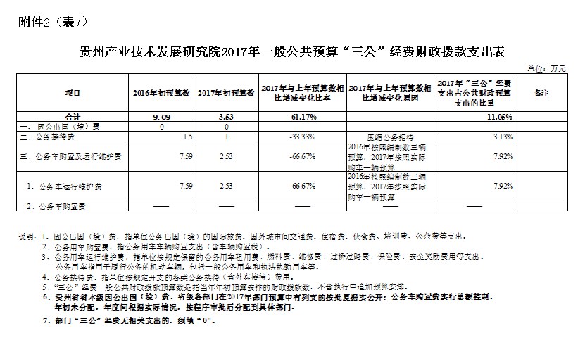 七、贵州产业技术发展研究院2017年一般公共预算“三公”经费财政拨款支出表
