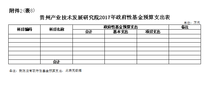 八、贵州产业技术发展研究院2017年政府性基金预算支出表