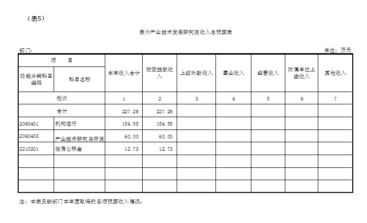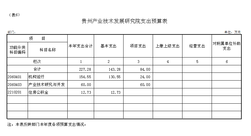 贵州产业技术发展研究院2016年部门预算收支预算总表 |