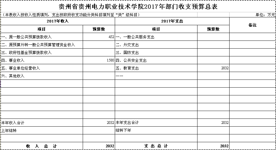 1、部门预算收支情况:我单位本年收入总预算为2032万元,支出总预算为2032万元,收支差额为0。