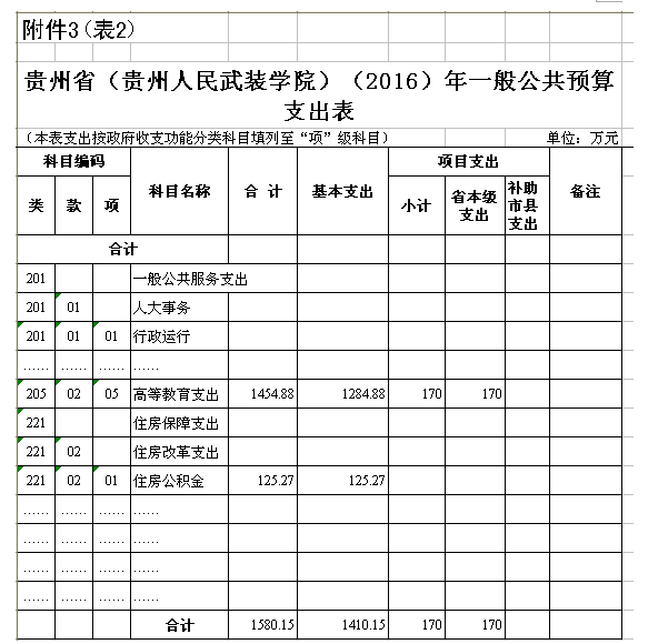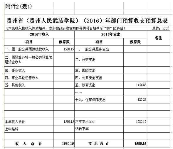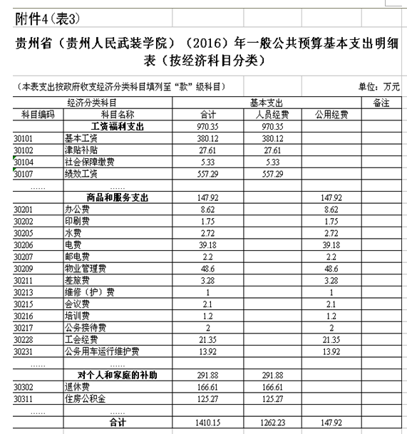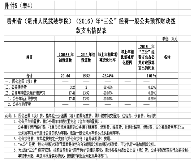 关于做好省级部门预算及“三公”经费预算公开的通知》(黔财编〔2016〕4号)要求,现将2016年度贵州人民武装学院部门预算及“三公”经费预算进行公开。