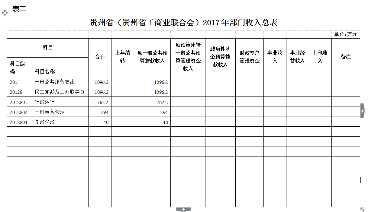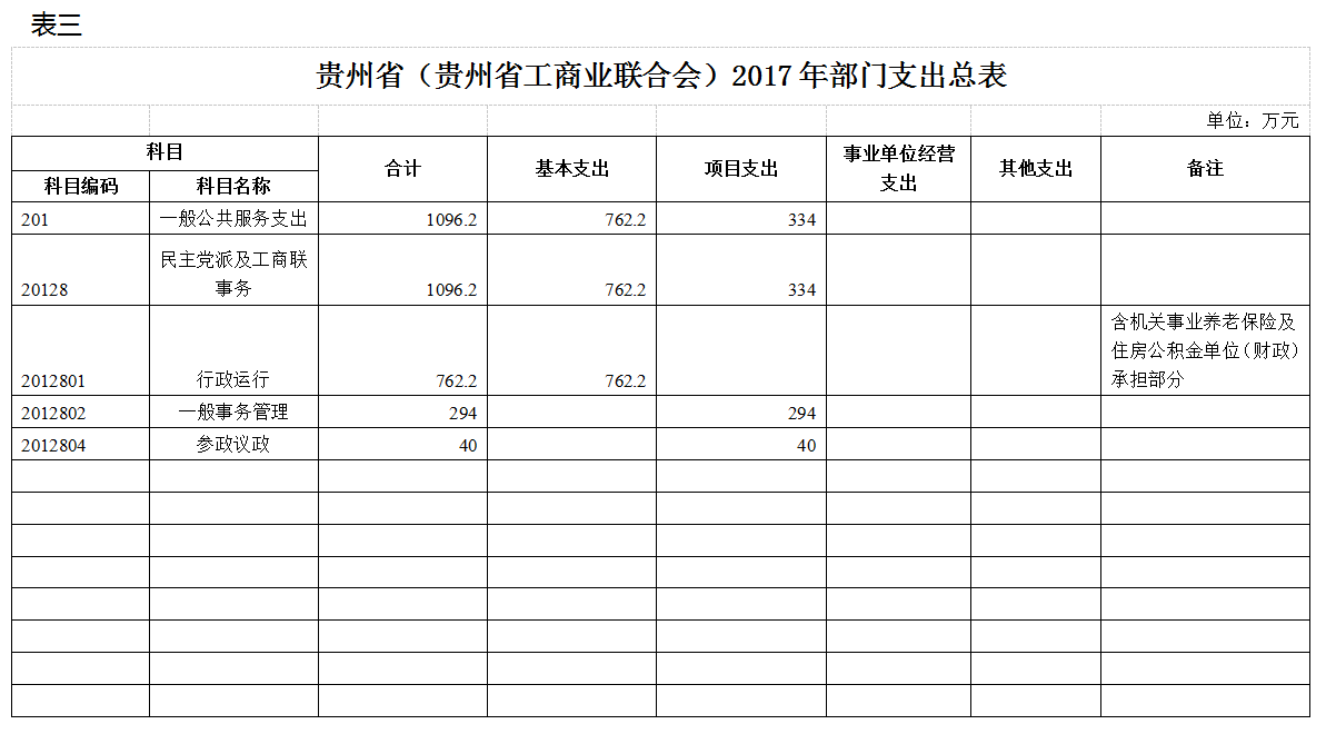 一、贵州省工商业联合会2017年度部门收支预算总表