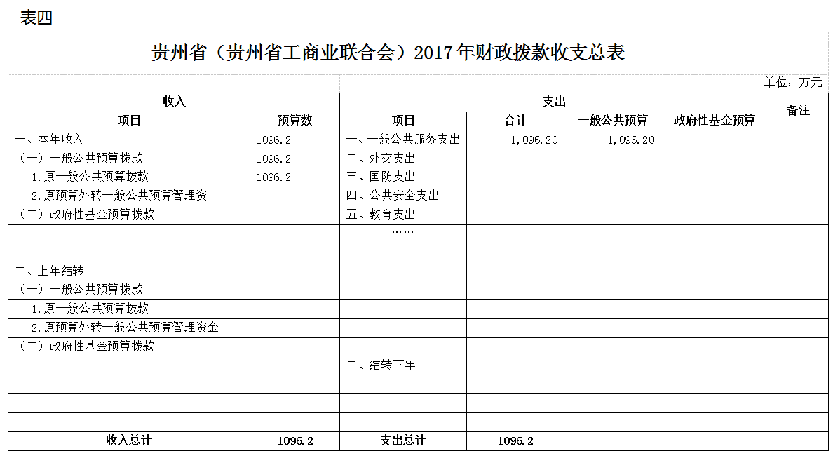 四、贵州省工商业联合会2017年度财政拨款收支总表