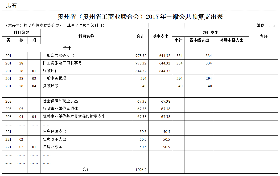 五、贵州省工商业联合会2017年度一般公共预算支出表