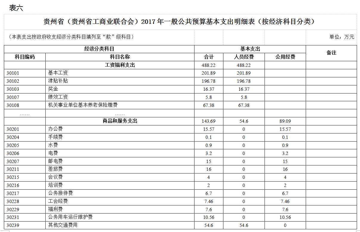 六、贵州省工商业联合会2017年度一般公共预算基本支出明细表(按经济科目分类)