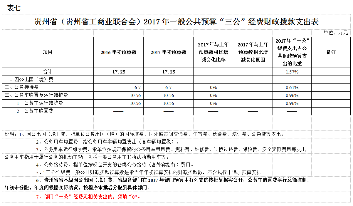 七、贵州省工商业联合会2017年度一般公共预算“三公”经费财政拨款支出表