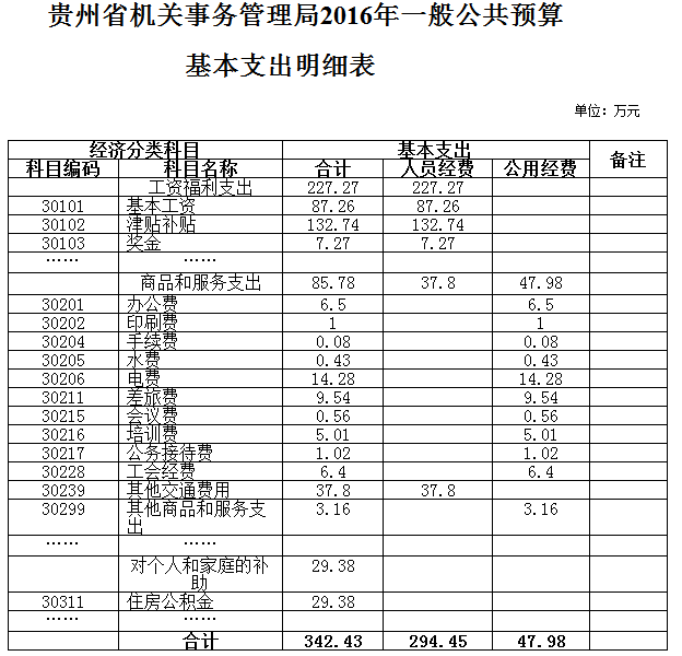 2、贵州省机关事务管理局2016年度部门预算一般公共预算支出表