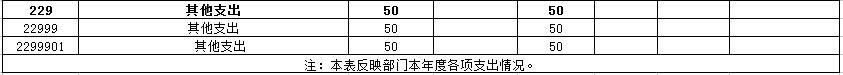 229(类)99(款)01(项)其他支出-其他支出当年预算0万元,支出决算为50万元。