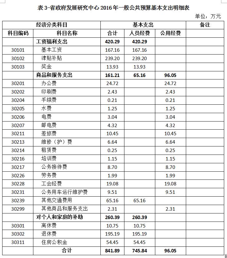 表3-省政府发展研究中心2016年一般公共预算基本支出明细表