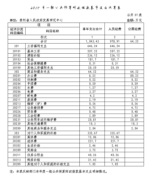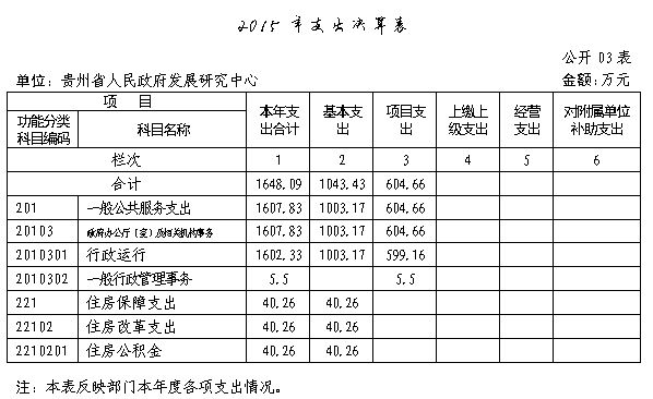贵州省人民政府发展研究中心2015年部门决算及“三公”经费决算信息公开表.xls