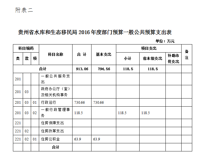 2、贵州省水库和生态移民局2016年度部门预算一般公共预算支出表