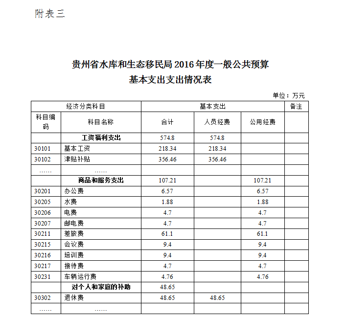 3、贵州省水库和生态移民局2016年度一般公共预算基本支出明细表