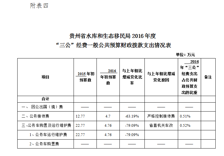 4、贵州省水库和生态移民局2016年度“三公”经费一般公共预算财政拨款支出情况表