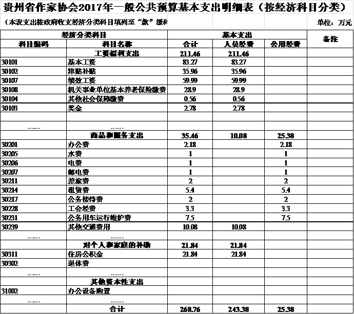 2.贵州省作家协会2017年一般公共预算基本支出情况说明