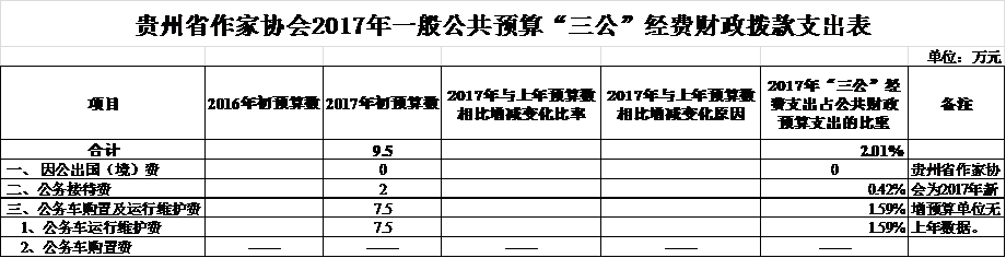2.贵州省作家协会2017年一般公共预算“三公”经费支出情况说明