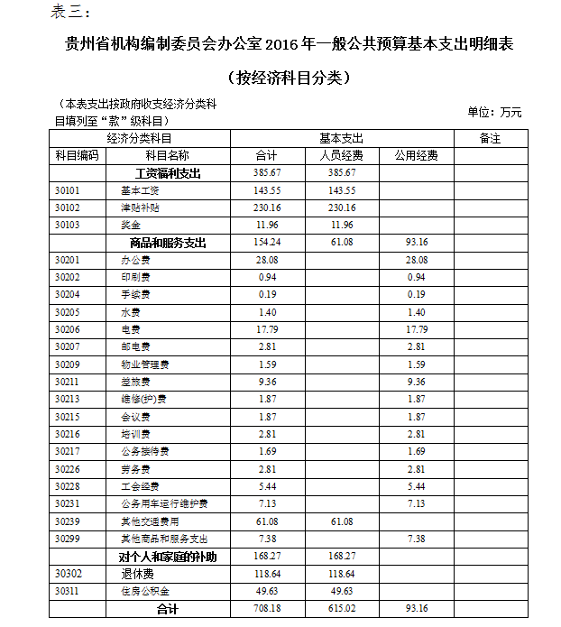 三、贵州省机构编制委员会办公室2016年一般公共预算基本支出明细表