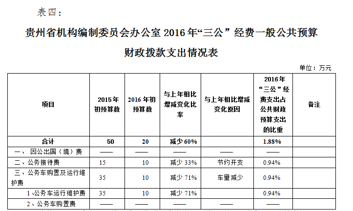 四、贵州省机构编制委员会办公室2016年“三公”经费一般公共预算财政拨款支出情况表